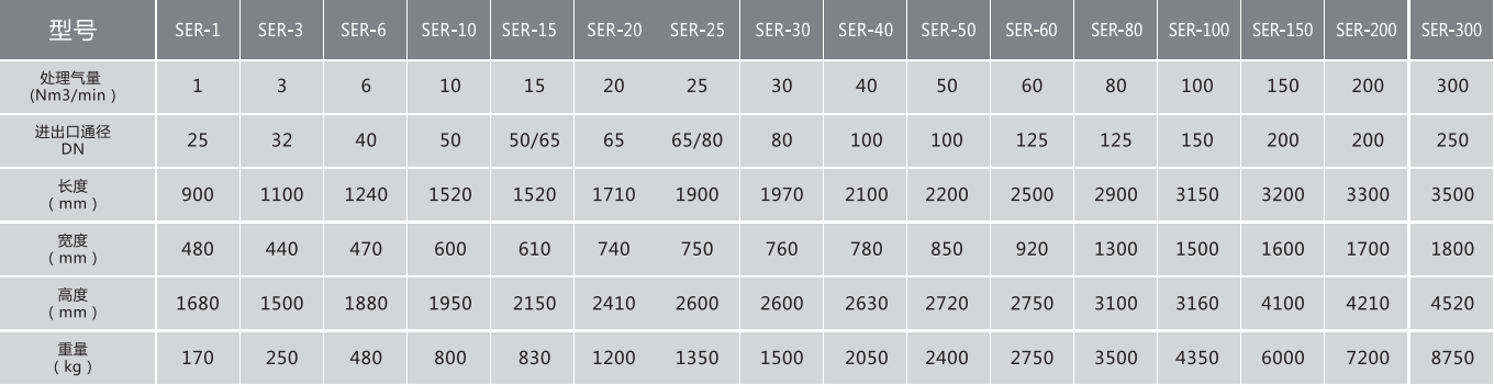 SER无热再生干燥机是根据变压吸附原理对压缩空气进行干燥的一种设备,加压状态下吸附压缩空气中的水份,使压缩空气等到干燥,减压时用一部分干燥压缩空气吹扫吸附剂,使吸附剂得以再生,两塔相互交替,循环使用从而得到干燥压缩空气。根据压缩空气常压露点的不同,选择不同的吸附剂,常用吸附剂有活性氧化铝,分子筛等。